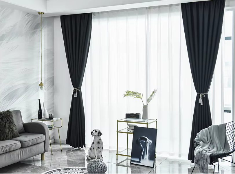 - Zatemňujúce závesy: blokujú svetlo a zabezpečujú úplné zatemnenie miestnosti, ideálne do spální.