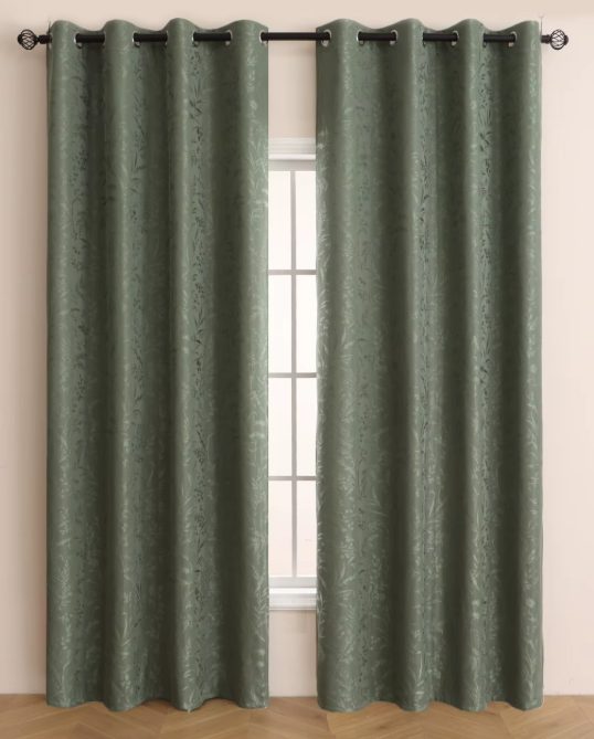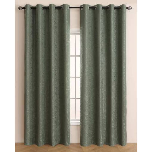 Zatemňujúci, vzorovaný záves so zavěšením grommet top - Zelený, 130 x 260 cm